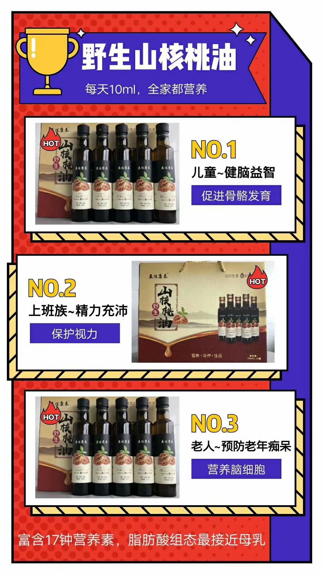 - 咱這一款是針對(duì)野生山核桃油半天落地會(huì)模式。1980的單,一套的話(huà)是20瓶。四個(gè)大禮盒,再送價(jià)值900的果蔬凈化機(jī)野生山核桃油營(yíng)養(yǎng)價(jià)值高,易吸收,產(chǎn)品有高度,免教育產(chǎn)品,一說(shuō)都認(rèn)可1.不但老年人認(rèn)同,2